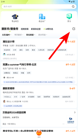 1、打開應(yīng)屆生求職APP,點(diǎn)擊右上角的編輯圖標(biāo),進(jìn)入求職信息編輯頁面。
