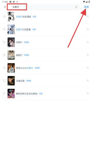 3、點(diǎn)擊搜索后,展現(xiàn)了相關(guān)內(nèi)容的動(dòng)漫、電視劇、電影,用戶可點(diǎn)擊電視劇進(jìn)行觀看。
