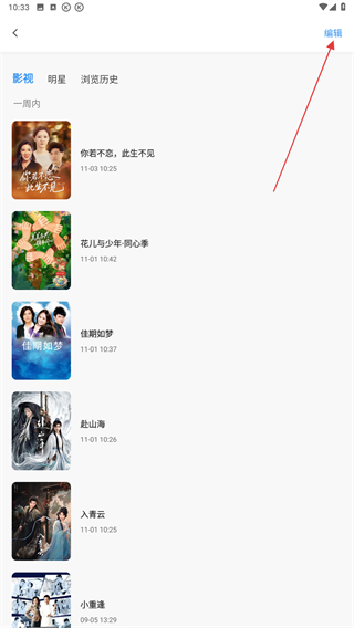 3、進(jìn)入訪問記錄的界面內(nèi),點(diǎn)擊右上角編輯的功能按鈕。