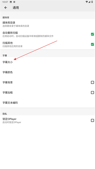 4、進入通用的界面內(nèi),在字幕下點擊字幕大小的功能按鈕。