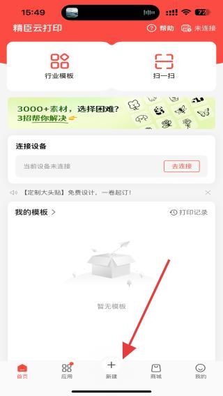1、啟動(dòng)精臣云打印APP,在首頁內(nèi)點(diǎn)擊下方新建的按鈕。