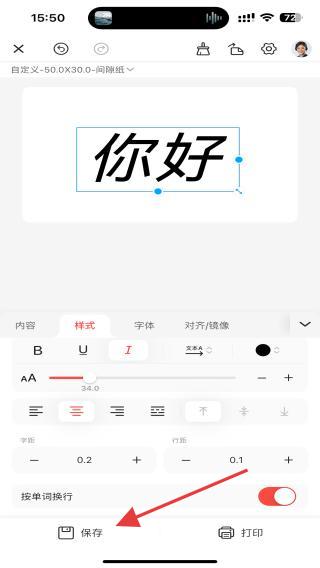 4、在空白標(biāo)簽下,可輸入文字內(nèi)容,設(shè)置字體、間距等,再點(diǎn)擊保存的按鈕即可。