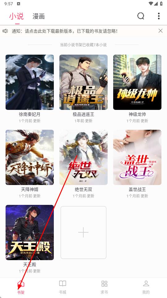 1、打開小小追書,點擊底部書架,查看《徐南秦妃月》《極品逍遙王》等已收藏小說,了解更新時間。