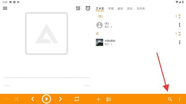 1、打開aimp播放器APP,在首頁內(nèi)點(diǎn)擊右下搜索的圖標(biāo)。