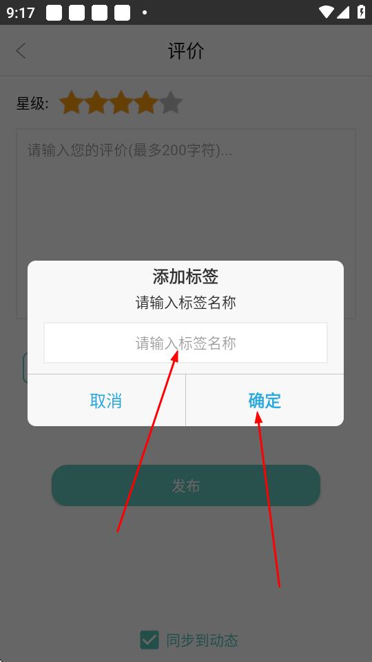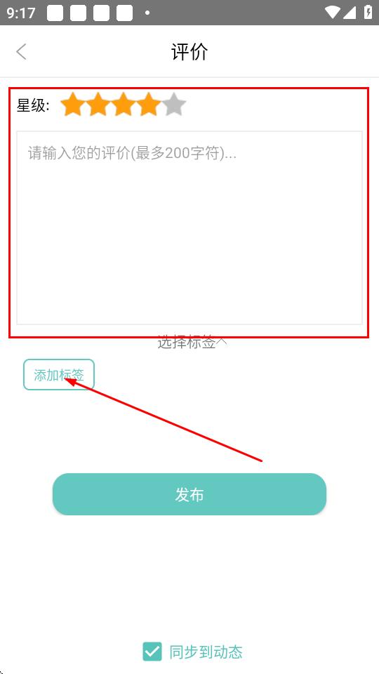 3、進(jìn)入評價頁面,選擇評分,輸入評價后,點擊添加標(biāo)簽。