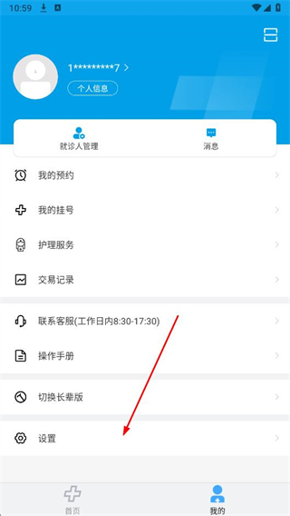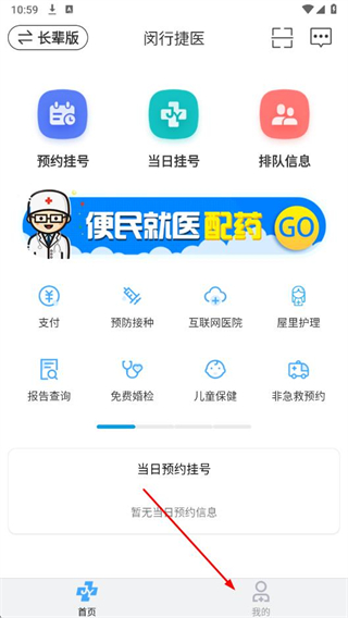 1、打開(kāi)閔行捷醫(yī)app,點(diǎn)擊首頁(yè)右下角我的選項(xiàng)。