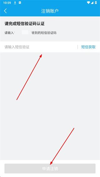 6、在短信驗(yàn)證碼認(rèn)證頁(yè)面,輸入收到的短信驗(yàn)證碼,點(diǎn)擊申請(qǐng)注銷。