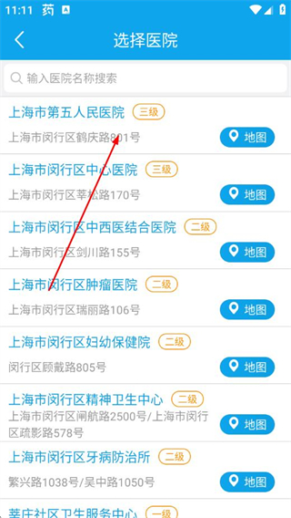 2、在選擇醫(yī)院頁(yè)面選擇想要預(yù)約的醫(yī)院,例如上海市第五人民醫(yī)院。