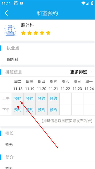 4、在科室預(yù)約頁(yè)面,選擇想要預(yù)約的日期和時(shí)段。
