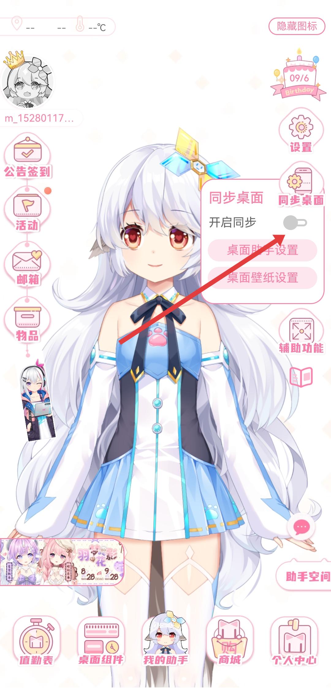 2、在彈出的同步桌面菜單中,點擊開啟同步右側(cè)的開關(guān),將其切換為開啟狀態(tài)。