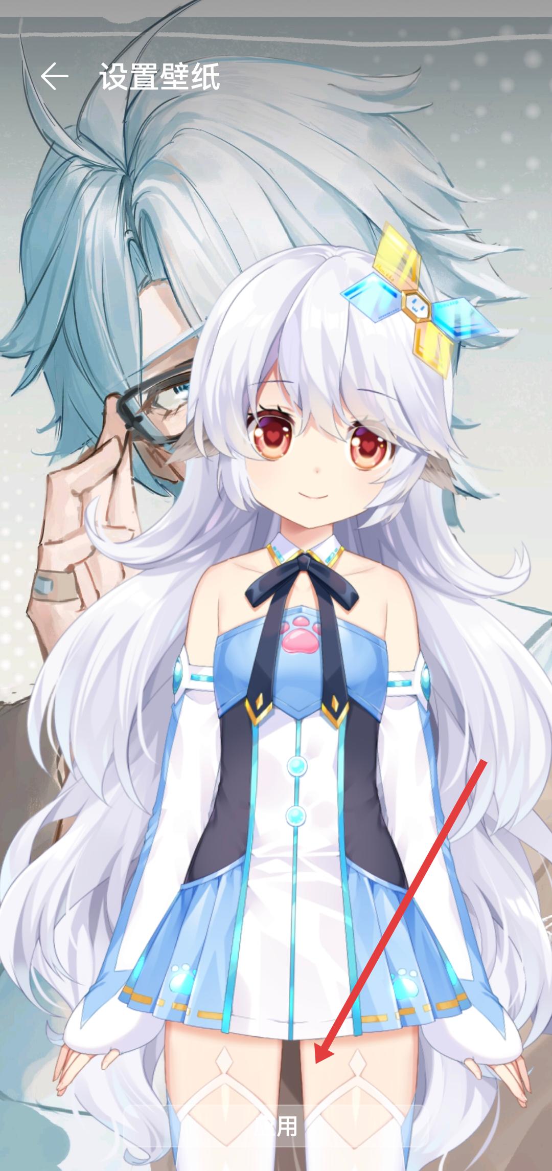 3、進入壁紙設(shè)置頁面后,點擊底部的應(yīng)用按鈕,應(yīng)用獸耳助手到桌面壁紙。