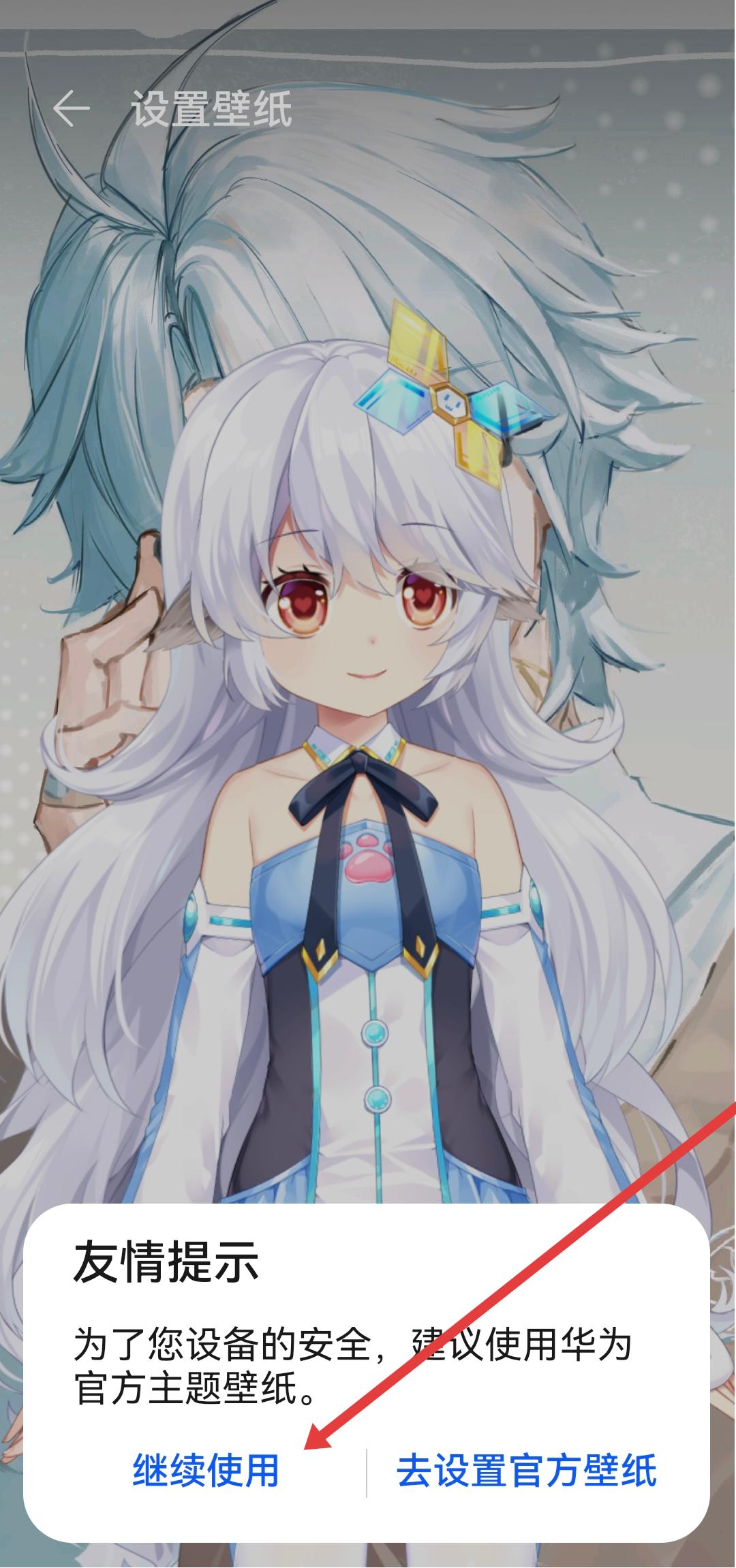 4、彈出友情提示建議使用官方壁紙后,點擊繼續(xù)使用按鈕,完成獸耳助手到桌面的同步操作。
