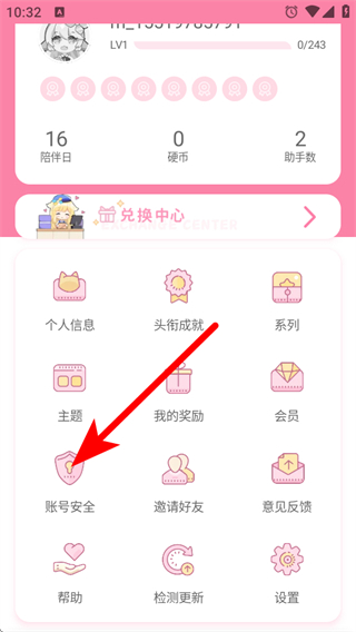 2、在個人信息頁面,點擊賬號安全選項,進入賬戶和綁定設(shè)置界面。