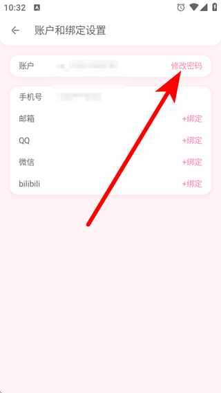 3、在賬戶和綁定設(shè)置界面,點擊修改密碼選項,進入密碼修改頁面。