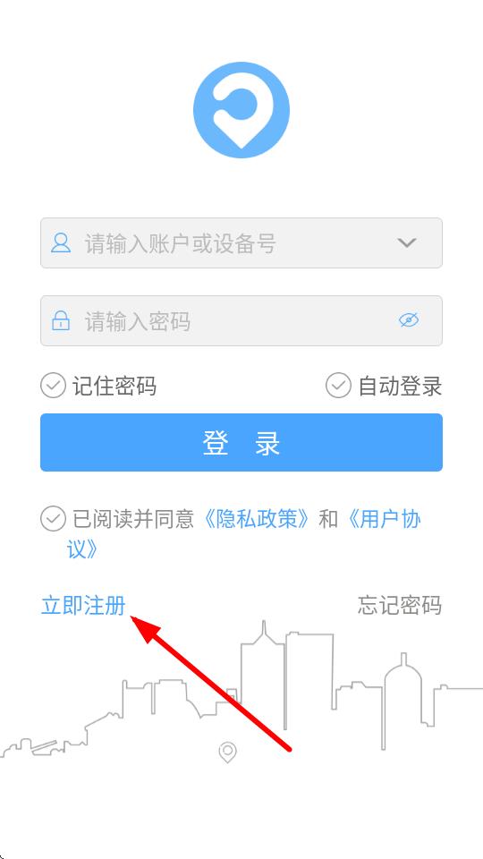 1、打開伴車星APP,在登錄界面點(diǎn)擊下方的立即注冊(cè)選項(xiàng)。