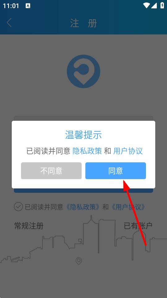 3、在彈出的溫馨提示框中點(diǎn)擊同意,確認(rèn)已閱讀并同意隱私政策和用戶協(xié)議。