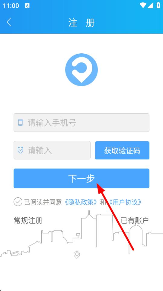 2、在注冊(cè)頁面輸入手機(jī)號(hào),點(diǎn)擊獲取驗(yàn)證碼,輸入收到的驗(yàn)證碼后點(diǎn)擊下一步。