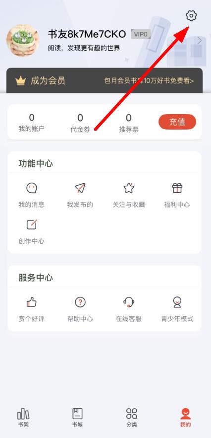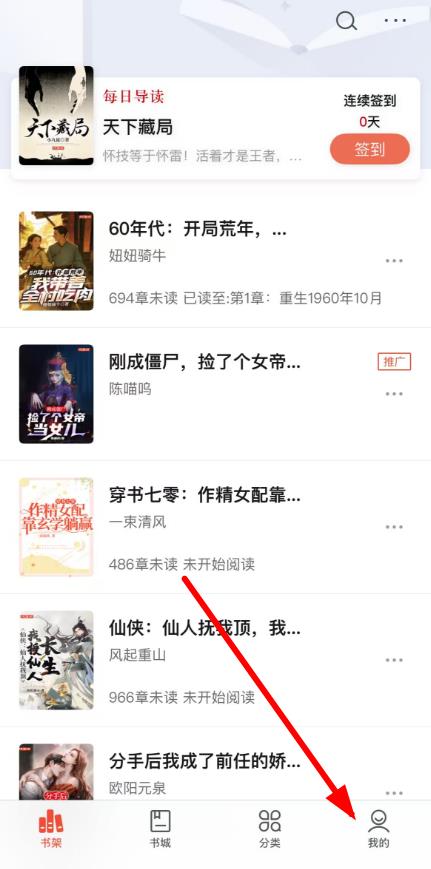 1、打開17k小說(shuō)APP,進(jìn)入主界面,點(diǎn)擊底部導(dǎo)航欄最右側(cè)的我的選項(xiàng),進(jìn)入個(gè)人中心頁(yè)面。