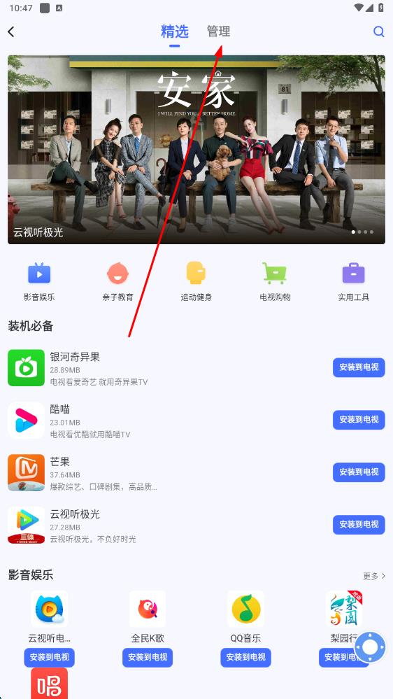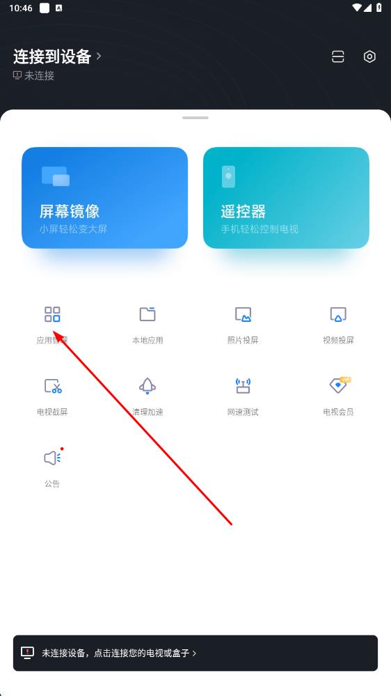 1、在手機(jī)上打開(kāi)小米電視助手應(yīng)用,點(diǎn)擊應(yīng)用管理選項(xiàng)。