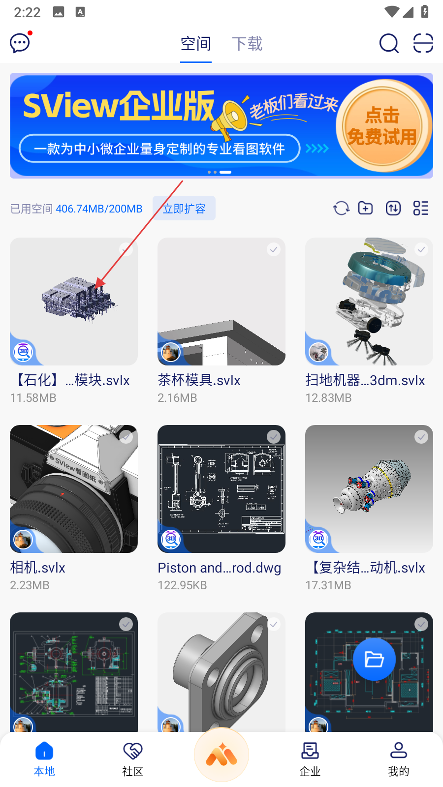1、打開SView應(yīng)用,進入本地頁面,找到需要保存的模型文件,點擊該文件進入模型查看界面。