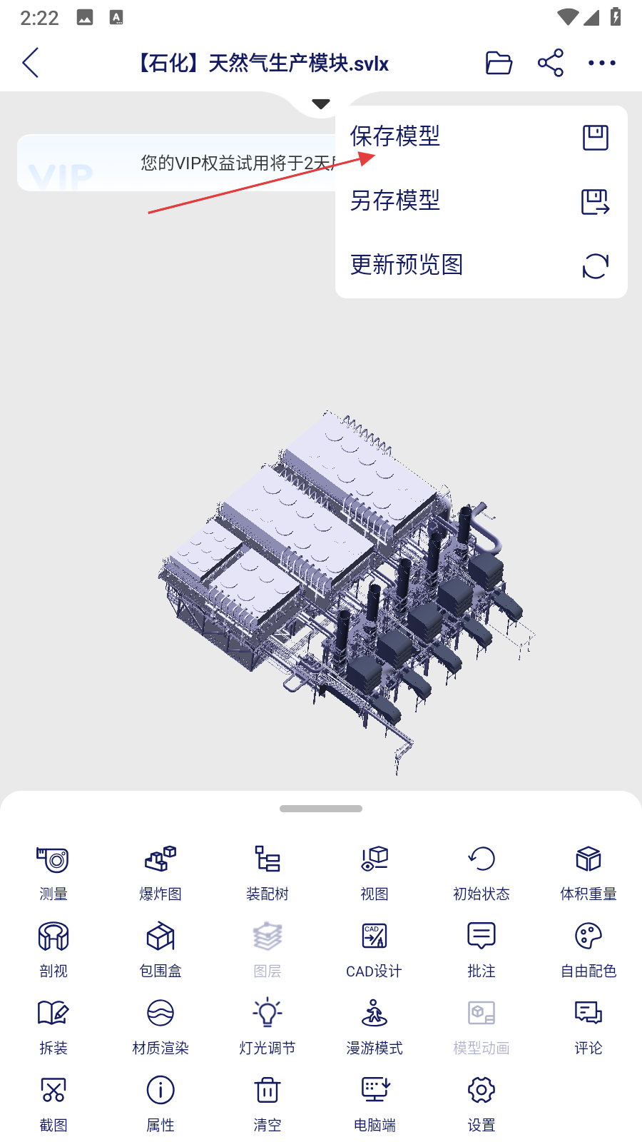 3、在選項列表中點擊保存模型,即可將當(dāng)前查看的模型保存至指定位置。