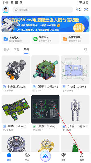1、打開SView看圖紙應(yīng)用,點擊右下角的會員選項。
