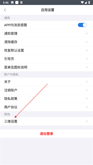 3、在應(yīng)用設(shè)置頁面,點擊三維設(shè)置選項。