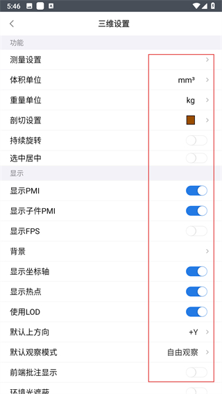 4、在三維設(shè)置頁面,點擊對應(yīng)的選項即可更改三維設(shè)置。