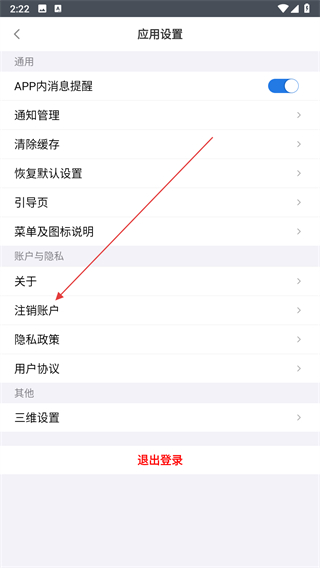 2、在應(yīng)用設(shè)置頁面,點擊注銷賬戶選項。