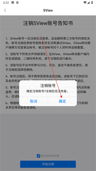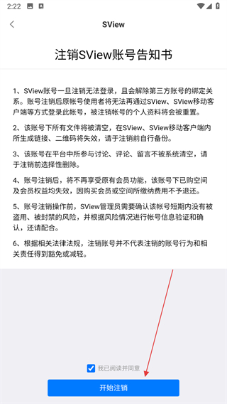 3、在注銷賬號告知書頁面,點擊開始注銷按鈕。