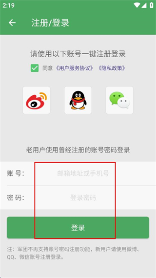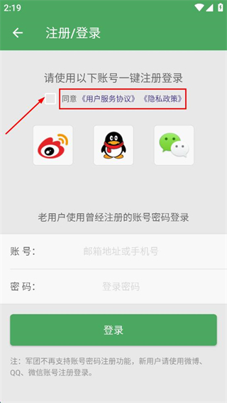3、在注冊登錄界面勾選同意用戶服務(wù)協(xié)議隱私政策。