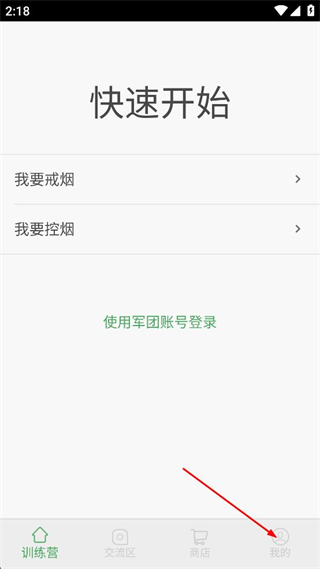 1、找到戒煙控?zé)熫浖?xùn)練營界面的我的選項,點擊我的。