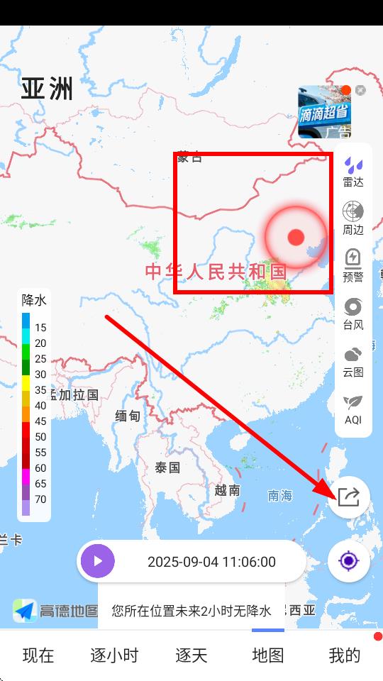 3、定位完成后,點(diǎn)擊右側(cè)的分享圖標(biāo),選擇分享渠道,即可將地圖分享出去。