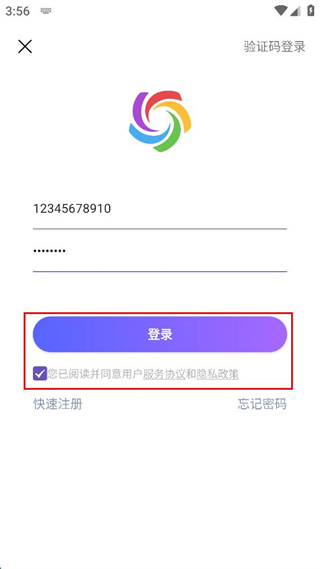 4、勾選“您已閱讀并同意用戶服務(wù)協(xié)議和隱私政策”,點(diǎn)擊“登錄”按鈕完成登錄。
