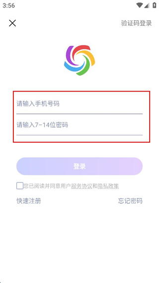 3、在登錄界面輸入手機(jī)號(hào)碼和密碼,準(zhǔn)備進(jìn)行登錄操作。