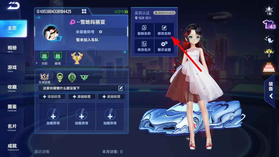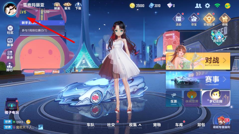 1、打開QQ飛車手游進(jìn)入游戲主界面,點(diǎn)擊左上角自己的頭像進(jìn)入個(gè)人信息主頁。