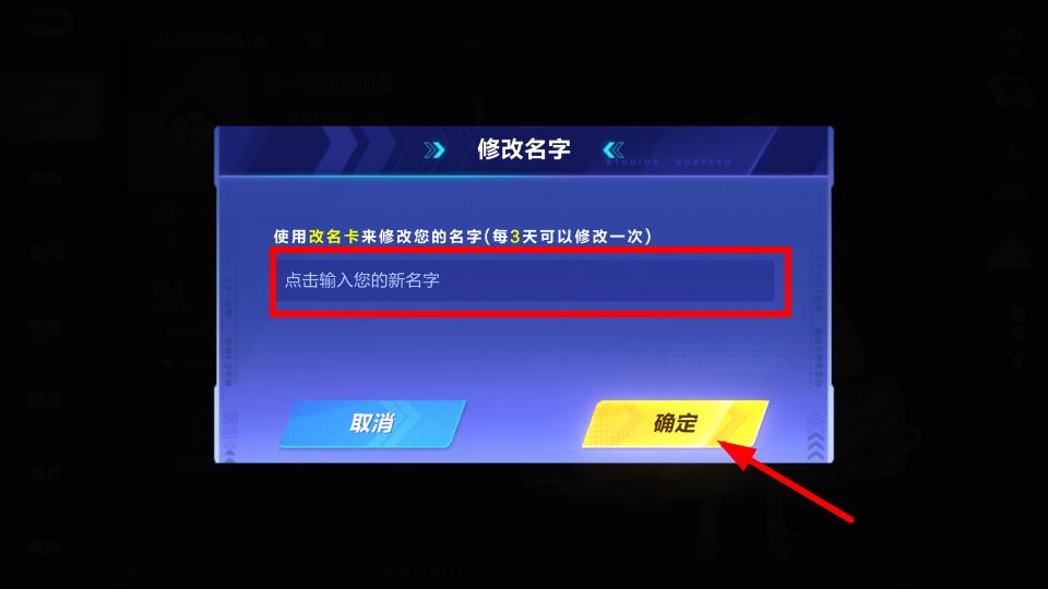 4、在修改名字界面中,點(diǎn)擊輸入框輸入自己想要更改的新昵稱,確認(rèn)昵稱可用后點(diǎn)擊確定按鈕即可完成昵稱修改。