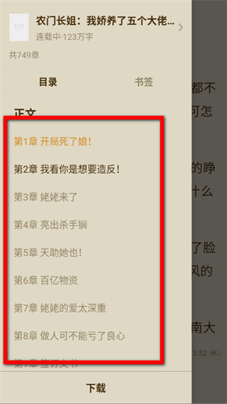 4、在彈出的目錄列表中,即可查看該書籍的詳細(xì)目錄內(nèi)容。
