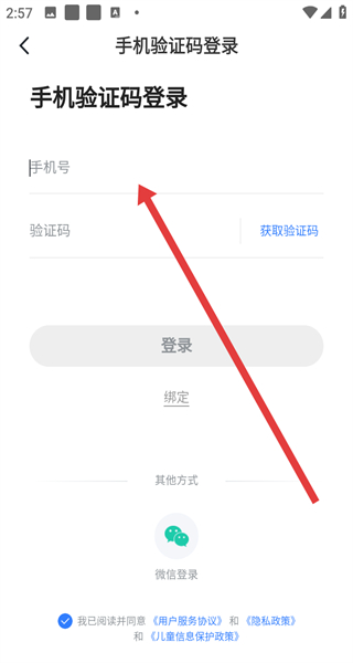 4、在手機(jī)驗(yàn)證碼登錄界面,點(diǎn)擊輸入框填寫手機(jī)號(hào),以便獲取驗(yàn)證碼完成登錄。