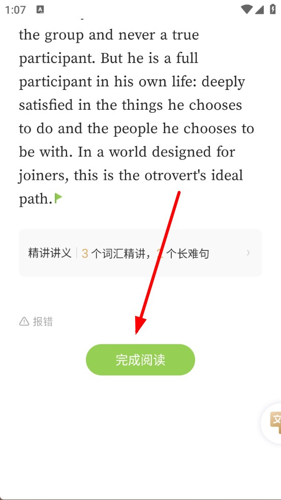 4、點(diǎn)擊文章底部完成閱讀,滿足打卡條件。