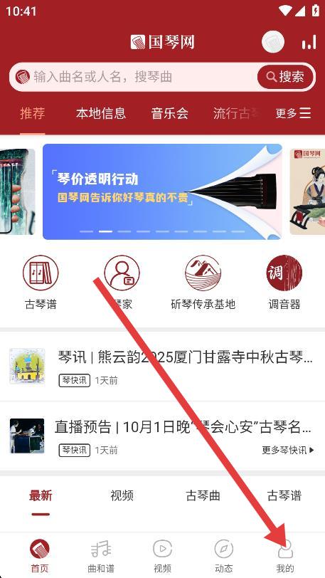 1、打開國琴網(wǎng)app,點擊底部導(dǎo)航欄中的我的。
