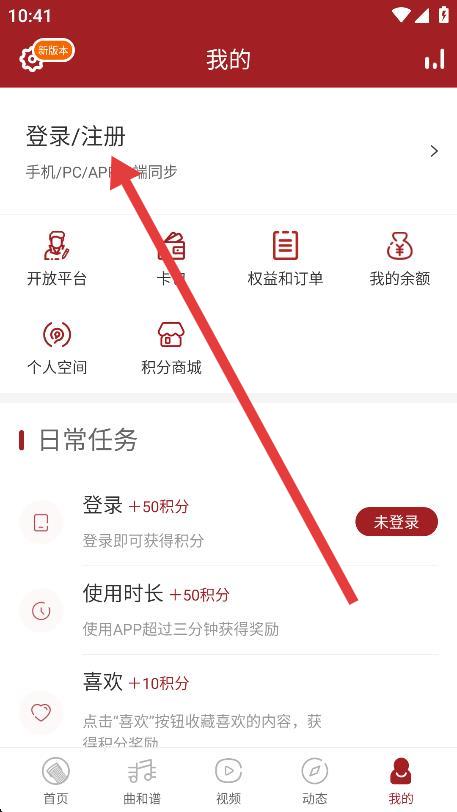 2、在我的頁面,找到并點擊登錄/注冊按鈕。