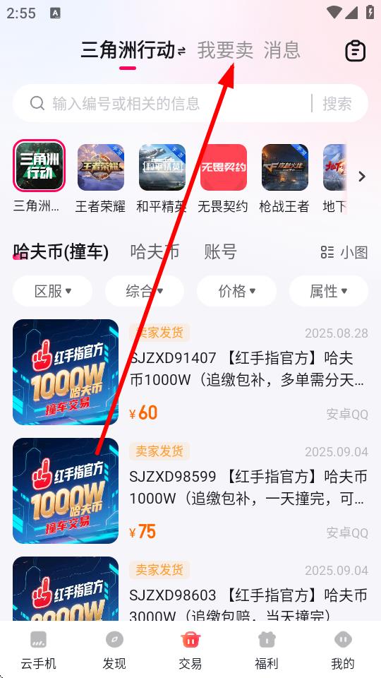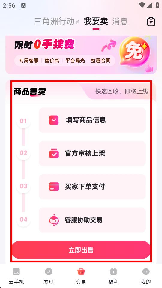 3、進入我要賣界面后,找到并點擊立即出售按鈕。