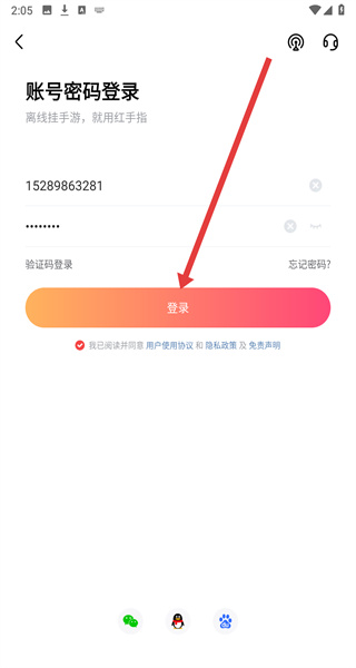 4、勾選我已閱讀并同意后,點擊登錄按鈕,完成紅手指APP的登錄流程。