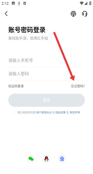 1、通過點擊密碼登錄按鈕,切換使用賬號密碼進行登錄操作。