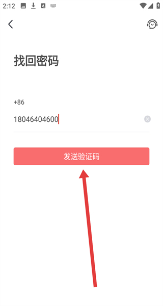 3、跳轉(zhuǎn)到找回密碼后,可以輸入手機后并點擊發(fā)送驗證碼按鈕,進行驗證。