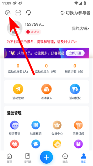 2、在個(gè)人頁面點(diǎn)擊左上角設(shè)置圖標(biāo),進(jìn)入設(shè)置功能列表頁面。