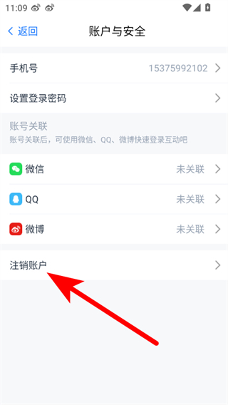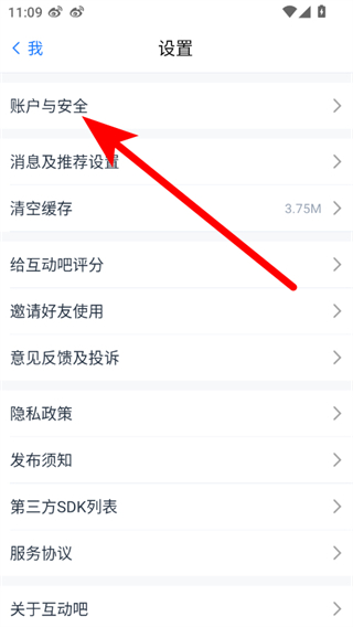 4、在賬戶與安全頁面中找到注銷賬戶選項(xiàng)并點(diǎn)擊,按照頁面提示完成驗(yàn)證等操作即可注銷互動(dòng)吧賬號。