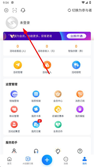 2、在個(gè)人頁面,點(diǎn)擊頭像旁未登錄區(qū)域,進(jìn)入登錄頁面。