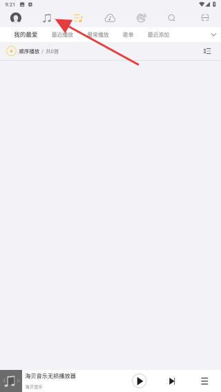 1、啟動(dòng)海貝音樂APP,在首頁(yè)的導(dǎo)航欄中點(diǎn)擊音符的圖標(biāo)。